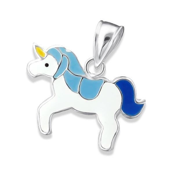 This magical unicorn pendant is the perfect gift for any little girl that loves horses or unicorns. Its loveable design and intricate engraving make it a very popular choice among children. The pendant can be easily slipped onto a necklace chain and incorporated into any look. It uses the colours of white, yellow, dark blue and light blue to form a unique unicorn pendant your kid will love. The pendant is made from sterling silver which is resistant to rust, corrosion and tarnishing.This Sterling Silver Children's Unicorn Pendant comes with an elegantly designed and sturdy gift box that is ideal for storing and presenting jewellery.