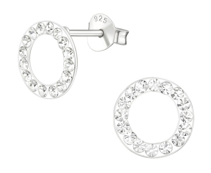 Sterling Silver Crystal Circle Ear Studs are sure to be the finishing touch to any outfit. Exquisitely crafted in sterling silver and will give your designs an elegant appearance.