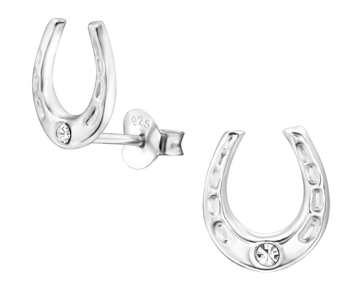 Sterling Silver Horseshoe Crystal Stud Earrings