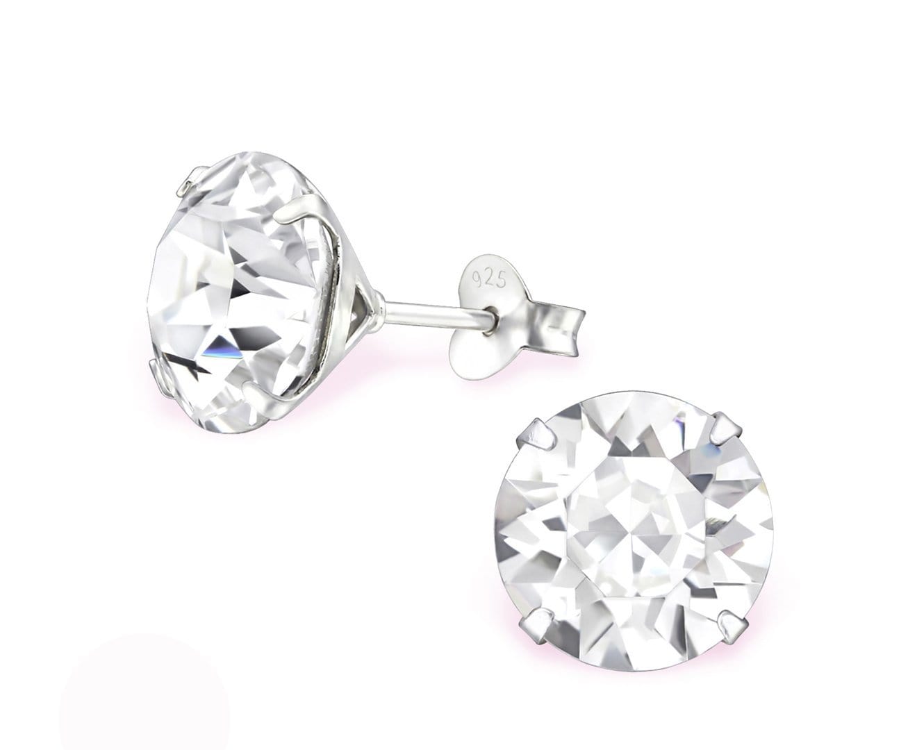 Sterling Silver Round Crystal Stud Earrings Made With Swarovski Crystal