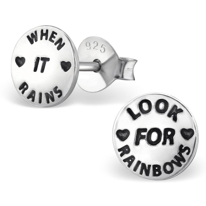 Sterling Silver When It Rains Look for Rainbows Kids Stud Earrings