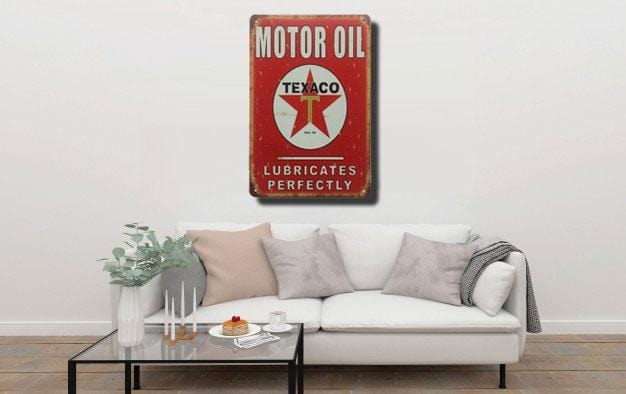 Texaco Sign Motor Oil Tin Poster - Wall metal tin poster will adorn the look and feel of your wall. The wall poster has dimensions of 20 x 30 cm and can be stuck in any corner of your room and it will look just as great.