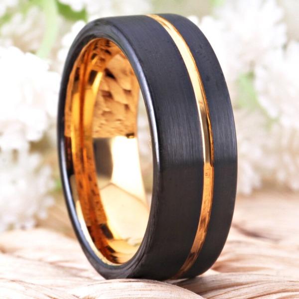 Tungsten Vintage Black and Rose Gold Wedding Bands