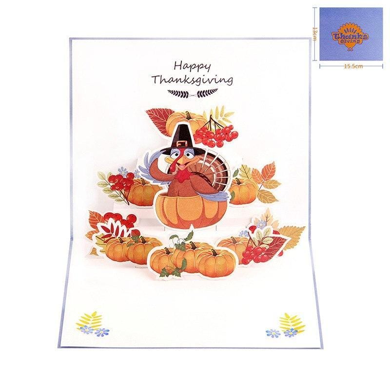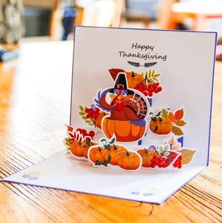 Turkey Pumpkin Pop Up Thanks Giving Greeting Card