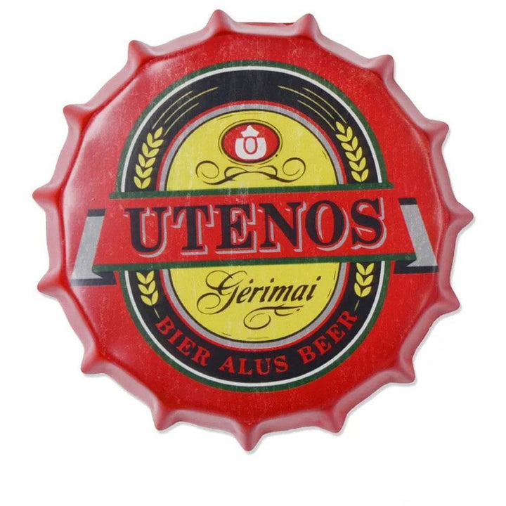 Utenos gerimai Beer Cap Metal Tin Sign Poster will adorn the look and feel of your wall. Utenos Bier Alus This versatile and durable tin sign, metal wall poster can be stuck in any corner of your room, office, shop, shed, garage or store and it will look just as great. Imported Iron. Fashion & Retro Quality Tinned Skin. Four pre-drilled holes for hanging or you may use double-sided tape.