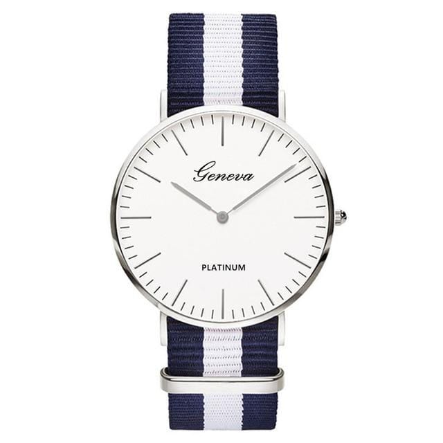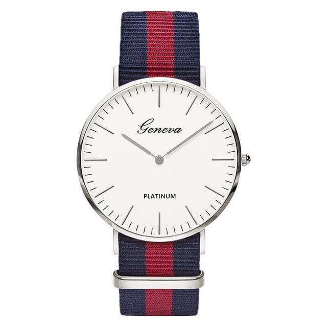 Inspired by the gorgeous colors of a classic flag, this red, white and blue band. The playful band, when paired with the simplistic and elegantly slim dial, gives you a timepiece that can be worn to both works and after work.