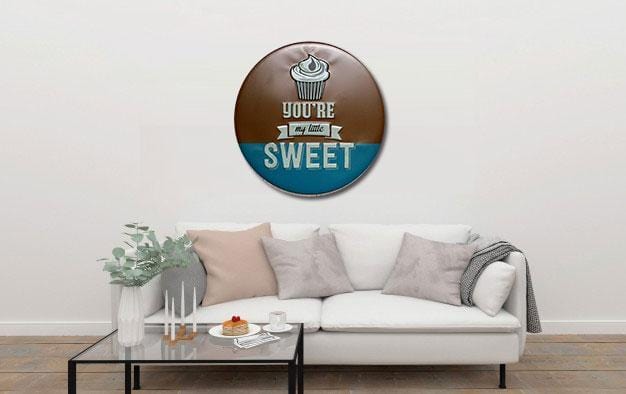 You are My Little Sweet Round Metal Tin Sign Poster will adorn the look and feel of your wall. This versatile and durable tin sign, metal wall poster can be stuck in any corner of your room, office, shop, shed, garage or store and it will look just as great. Imported Iron. Fashion & Retro Quality Tinned Skin. Four pre-drilled holes for hanging or you may use double-sided tape.